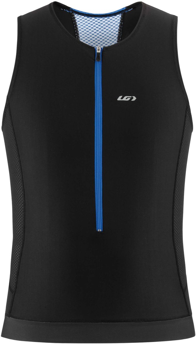 The Sprint Tri Sleeveless is made of race-proven, renowned Endurexx fabric that dries fast and manages moisture efficiently. Mesh fabric in the back ensures efficient heat management on those hot summer days. When it comes to nutrition, new angled back pockets offer plenty of storage for bars and gels while preventing any loss during the race thanks to a tight elastic opening. A silicone gripper circles the bottom of the Sprint Tri Sleeveless to make sure it doesn't move up during effort. The reflective trims and logo make it a great asset for both early birds and nights owls.